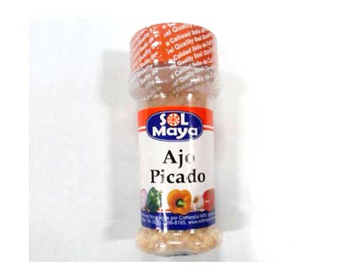 Descripción del producto Producto: Ajo Picado Marca: Sol Maya Envase: Vasito plastico Peso Neto: 39 gr.