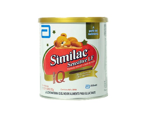 Similac Sensitive® lata con 375g para bebés intolerantes a la lactosa Presentación lata de 375g, lactantes de 0 a 12 meses Contiene: Hierro, AA, DHA, omega 3 yomega 6,Libre de oleína de palma,Sin lactosa