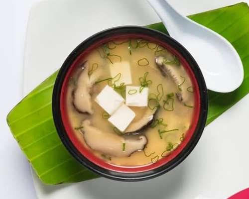 Descripción: Caldo de miso con tofu, shitake y cebollín