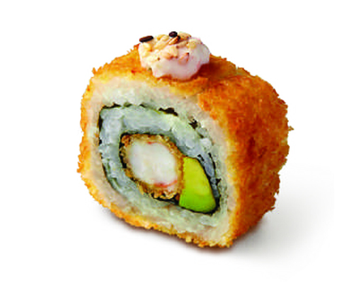 Descripción: Camarón empanizado y aguacate por dentro; queso crema por fuera; servido con salsa Itto y ajonjolí.
