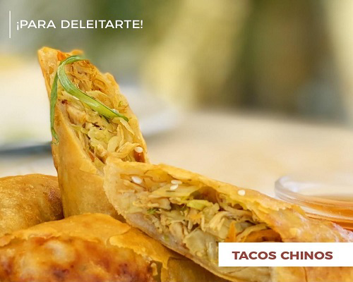 Dos deliciosas órdenes de tacos con verdura y pollo con salsa agridulce de la casa aparte.