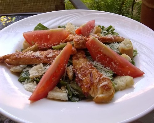 Incluye: Lechuga, tomate, crutones, queso parmesano y aderezo cesar hecho en casa.