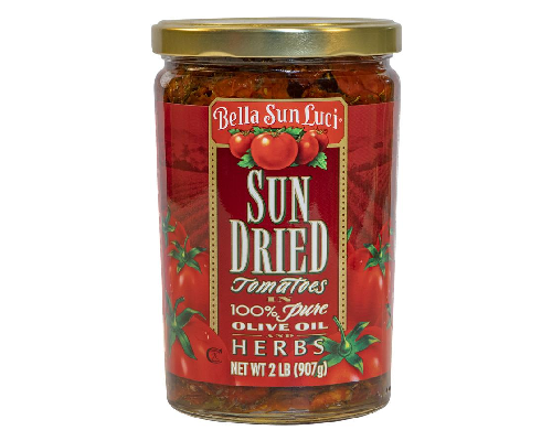 Tomates deshidratados al sol, aceite de oliva, ajo, hierbas, especias, dióxido de azufre (conservante). Contiene sulfitos.