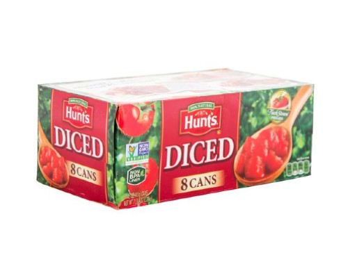 Disfruta del delicioso sabor de los tomates picados Hunt's. El sabor de los tomates madurados en la planta Hunt's realza las pizzas, las cazuelas, los guisos y el chile con carne. Pelados, picados y listos para usar, los tomates picados Hunt's son perfectos para platos que necesitan trozos más pequeños de tomate.
