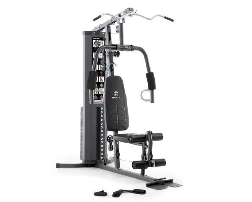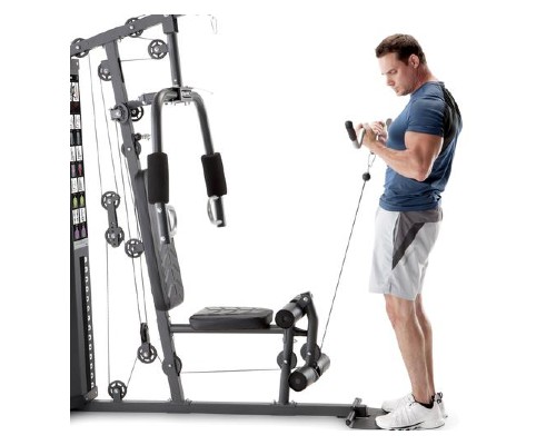 Cuenta con un diseño eficiente, que permite ahorrar espacio, ayuda a lograr rápidamente el cuerpo que deseas con flexiones de brazos de doble acción que permiten ejercicios de flexiones y aperturas de pecho, así como concentrarte en el tronco con el accesorio para abdominales, incluso puedes trabajar los músculos de la parte inferior del cuerpo con el desarrollador total de piernas. Las almohadillas en rodillo de espuma permiten un entrenamiento cómodo, podrás controlar la resistencia mediante el ajuste de la pila de pesas seleccionable. Peso máximo del usuario: 300 lb. Sus dimensiones son: 72" x 38" x 78".