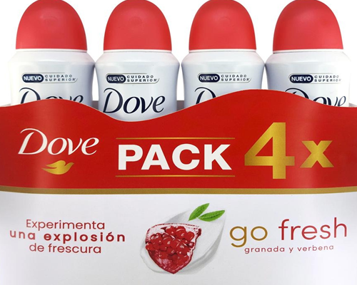 Dove Desodorante Dermoaclarante en Aerosol 4 Unidades de 150 mL / 5.2 oz c/u. Piel suave y protegida.
