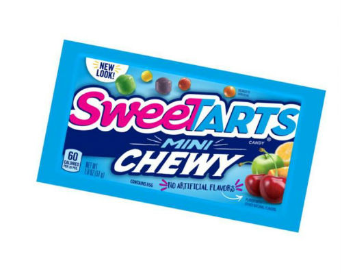 Deliciosas Sweetarts Tangy caramelo; Mini Sweetarts masticables. Net Weight 1.8 oz por bolsa.