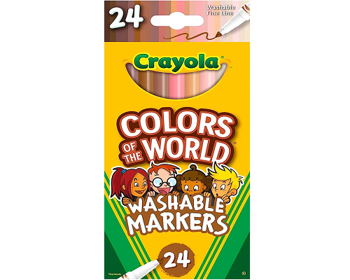 Crayola Los marcadores de línea fina Colors of the World contienen 24 colores especialmente formulados y lavables que representan a personas de todo el mundo. ¡Ahora es aún más fácil para los niños colorearse a sí mismos, a sus familias y amigos de todo el mundo! Los colores del mundo se dividen en tres tonos principales: almendra, dorado y rosa, y todos los tonos más oscuros o más claros en el medio, ¡lo que facilita que los niños de todas partes se vean a sí mismos en su arte! Los marcadores de línea fina Crayola son herramientas de dibujo precisas. Ideal para colorear en áreas pequeñas, estos marcadores también son ideales para escribir o dibujar líneas finas o puntos. Estos marcadores tienen un montón de colores vibrantes y no manchan ni traspasan el papel.