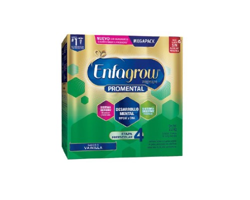 Enfagrow premium promental 4 vainilla posee una innovadora combinación de MFGM, DHA y otros neuronutrientes que junto con tu estimulación apoyan al desarrollo mental, vitaminas y minerales que apoyan al sistema inmune y prebióticos que apoyan al funcionamiento del sistema digestivo. A partir de los 24 meses. 4 Bolsas de 550g.