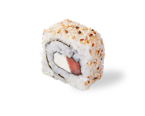 Descripcion: Sake fresco y queso crema por dentro; ajonjolí por fuera.
