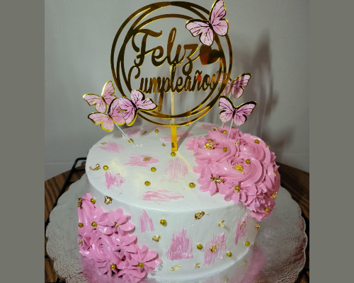 Pastel de merengue. Escoger torta vainilla o chocolate y el relleno entre dulce de leche, mermelada de guayaba o piña.