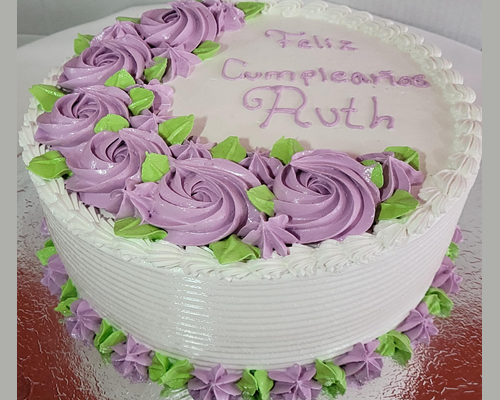 Pastel blanco con rosetón morados media luna - La Pastelería