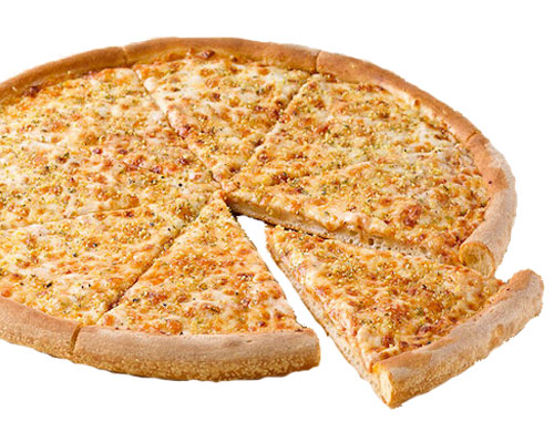 Cubierta con salsa de pizza y seis quesos premium: mozzarella, parmesano, romano, asiago, provolone y fontina.