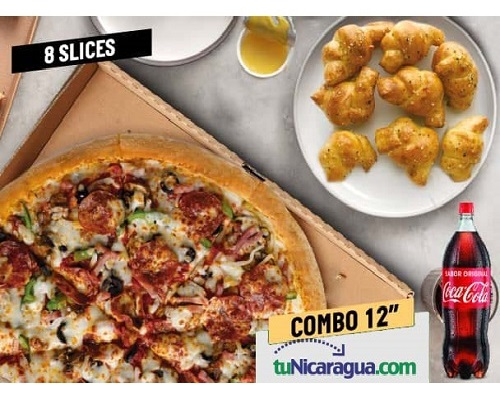 1 Pizza media de 12 Pulgadas de 8 slice, masa regular + 1 Garlic Knots (8unid) + 1 Gaseosa 2 litros