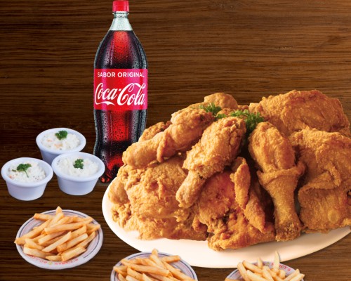 8 Piezas de pollo frito (2 muslos, 2 piernas, 2 pechugas, 2 alas)