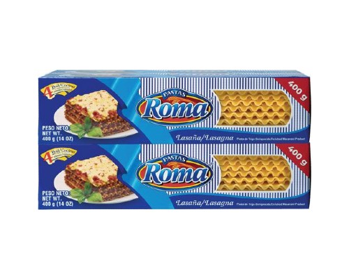Incluye 4 unidades Roma Lasaña 400 g cada una. Pasta de trigo enriquecida.