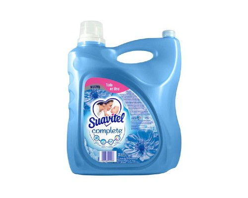 Suavitel Complete maneja una tecnología de protección de tejidos que libera agentes acondicionadores en contacto con el agua, creando una capa protectora, enriqueciendo y reduciendo la fricción durante el proceso de lavado. Te brinda fragancia, protección y suavidad a un precio atractivo; Su increíble fórmula que penetra en las fibras de tus telas elimina los residuos de detergente, reduce las arrugas y protege 3 veces más los colores, además tiene un delicioso aroma que perdura y deja tus prendas suaves como el amor de mamá. Para su uso en lavado a mano: debes agrega 2 tapas de Suavitel Complete al agua del último enjuague. Para su uso en lavadora: debes agregar 2 tapas de Suavitel Complete al agua del último ciclo de enjuague. Para mejores resultados y para evitar manchas temporales no viertas Suavitel Complete directamente en la ropa; dilúyelo previamente en agua.